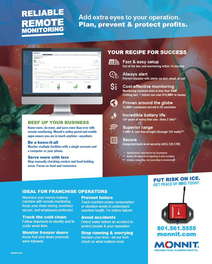 Monnit has many customers in the Food Service Industry. IoT can safeguard so much for food service pros, but there isn't an industry-wide awareness of the technology. I designed this sheet for a less technical audience with so much to gain from remote monitoring.